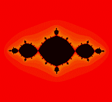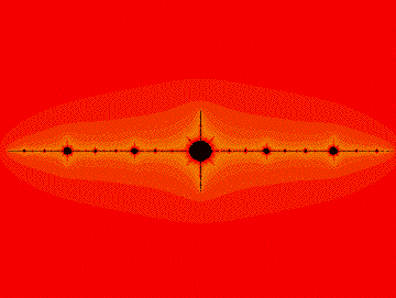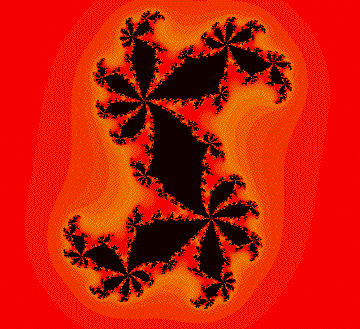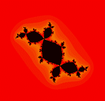FractInt is a very good program for the PC for looking deeply into the Mandelbrot set. There is a Mac port available as well, though it is still under development. Also for the Mac is FractalAsm, an excellent program for exploring a variety of one complex dimensional dynamical systems written by Karl Papadantonakis. There are also myriad java programs available online. Good ones are here and here. Students can use these programs both to explore Julia sets and the Mandelbrot set and also to explore the relationship between the location of parameter values in the Mandelbrot set and the shape of the Julia sets near there. Julia sets obtained from parameter values near the edge of the Mandelbrot tend to look like the Mandelbrot set does locally near that point. Why?