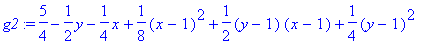 The first graph shows g and its second Taylor polynomial over the x_range and y_range specified.