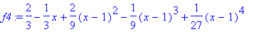 display([gr0,gr1,gr2,gr3,gr4],thickness=2,title=`Taylor polynomials about x=1; f is in red`);