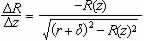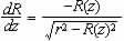 We can get the same differential equation by using (*) above which implies that the circle at height z has circumference 2pre-s/r, where s is the arc length along the surface from (0,r) to (z,R(z)). We can solve this differential equation explicitly for z and obtain the solution: