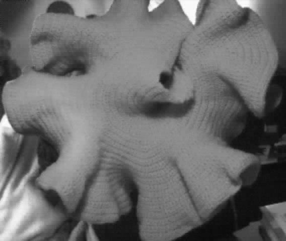 If you tried to make your annular hyperbolic plane from paper annuli you certainly realized that it takes a lot of time. Also, later you will have to play with it carefully because it is fragile and tears and creases easily -- you may want just to have it sitting on your desk. But there is another way to get a sturdy model of the hyperbolic plane which you can work and play with as much as you wish. This is the crocheted hyperbolic plane.