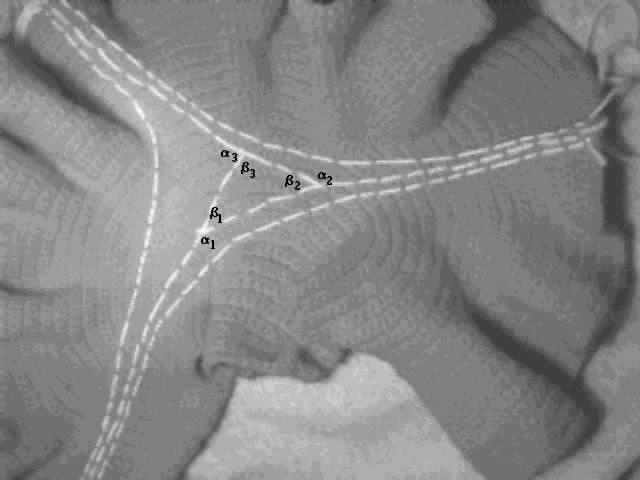 The radial curves are geodesics. The radial curves (curves that run radially across each annulus) have intrinsic reflection symmetry in each Hd because of the symmetry in each annulus and the fact that the radial curves intersect the bounding curves at right angles. These reflection symmetries carry over in the limit to the annular hyperbolic plane. Such bilateral symmetry is the basis of our intuitive notion of straightness (see Chapter 1 of [2] and [3] for more details) and thus we can conclude that these radial curves are geodesics (intrinsically straight curves) on the annular hyperbolic plane.
