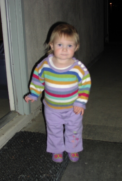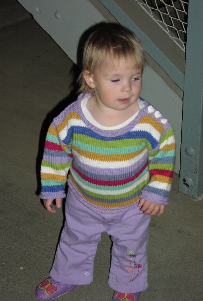 . I knit the little jumper she is wearing underneath as well based on a pattern from Minnowknits by Jil Eaton.
